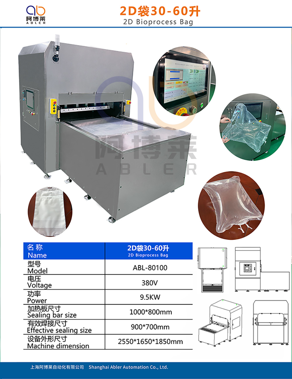 產(chǎn)品描述:2D袋焊接機(jī),主要為生物制藥液袋生產(chǎn)使用,袋體一次成型。此設(shè)備適合30-60升一次性儲(chǔ)液袋焊接,符合CE安全標(biāo)準(zhǔn),整機(jī)嚴(yán)格按照GMP要求設(shè)計(jì)制造。