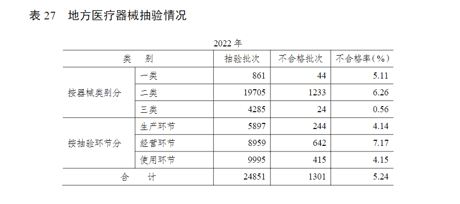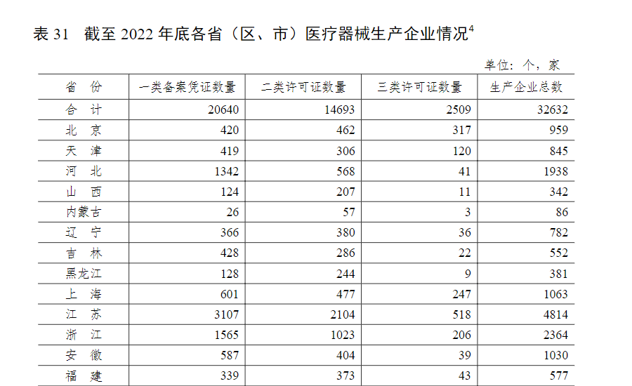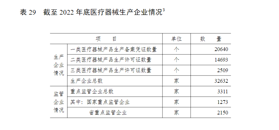 2023年04月19日國(guó)家藥品監(jiān)督管理局公布了藥品監(jiān)督管理統(tǒng)計(jì)年度數(shù)據(jù)(2022年),報(bào)告所用數(shù)據(jù)來源于藥品監(jiān)督管理統(tǒng)計(jì)調(diào)查制度的月報(bào)、季報(bào)和年報(bào)。除特殊說明外,數(shù)據(jù)報(bào)告期為 2022 年 1月 1 日至 2022 年 12 月31 日。本文整理了有關(guān)醫(yī)療器械相關(guān)的統(tǒng)計(jì)數(shù)據(jù)以供參考。
